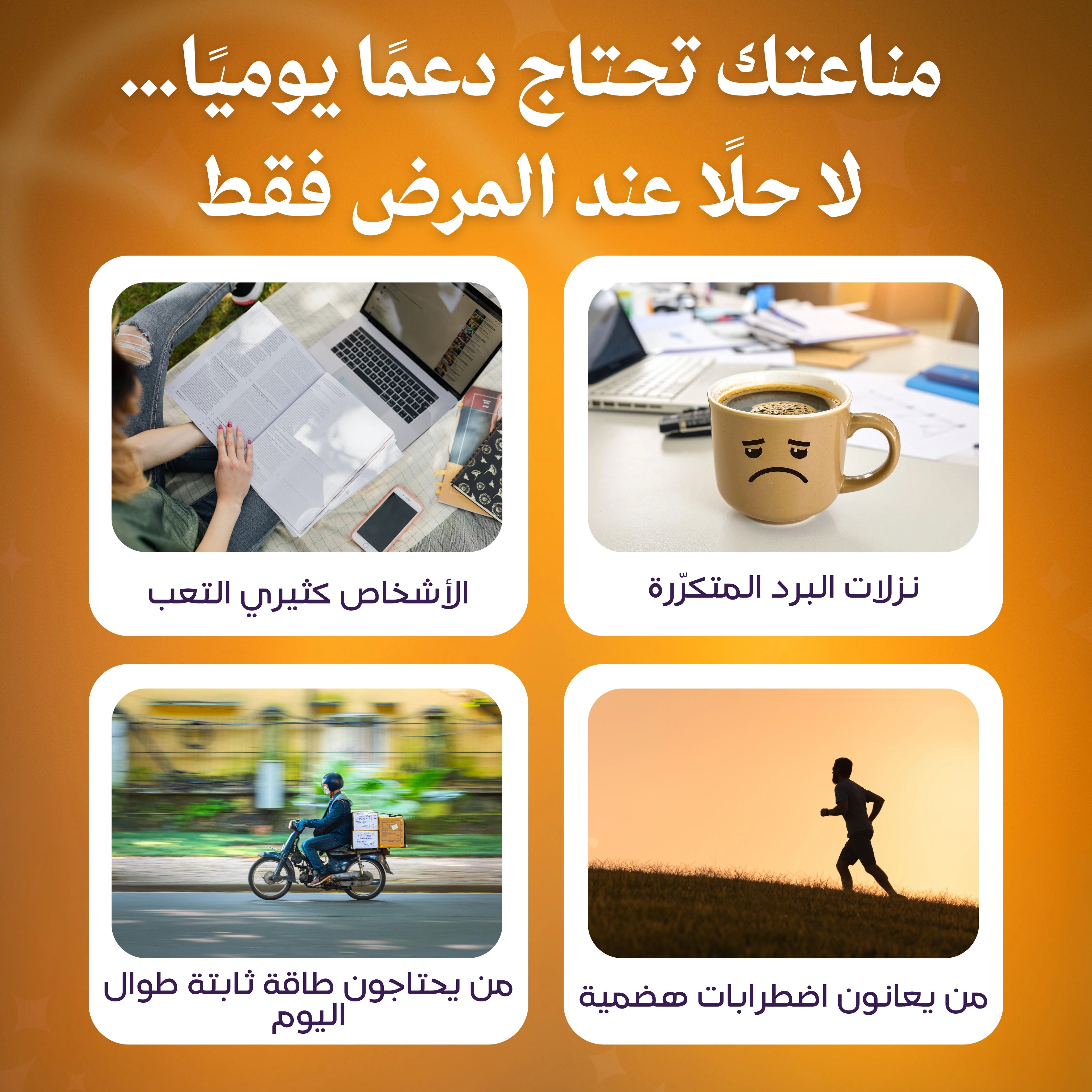 • مناسب لفترات التعب وتغيّر الفصول: خيار عملي للأشخاص الذين يرغبون في تقوية دفاعات الجسم خلال الفترات الحساسة.